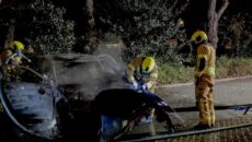 DORDRECHT – Dinsdagavond is op de Wibautstraat in Dordrecht een auto in brand geraakt. De brandweer kreeg rond 20.15 uur een melding en kwam snel ter plaatse. Volgens de brandweer ontstond het vuur aan de rechtervoorzijde van het voertuig. Over een mogelijke rol van vuurwerk is niets bekend. De oorzaak van de brand wordt nog onderzocht. ( Foto’s: Stolk Fotografie )