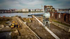 DORDRECHT – De werkzaamheden aan het Wervenpark vorderen gestaag. Sinds de start in 2024 is het park stap voor stap ingericht als groene entree van Stadswerven, met ruimte voor natuur, wandelen en spelen. Aannemer GKB heeft bestaande constructies opgeknapt en het terrein verder ingericht. ( ( Dronefoto’s: Stolk Fotografie )