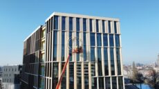 Het Dordthuis krijgt steeds meer zijn uiteindelijke gedaante en daarbij hoort de enorme klok op de gevel aan de zijde van de Johan de Wittstraat.