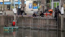 DORDRECHT – Dit jaar is de overdekte ijsbaan niet zomaar terug, maar wel op een heel bijzondere plek: op en over het water bij de Spuiboulevard. De baan is inmiddels volop in opbouw. (Foto’s: Stolk Fotografie)