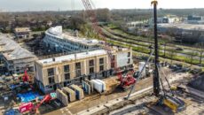 DORDRECHT – Afgelopen vrijdagmiddag werd de start van de bouw van 25 sociale huurwoningen in de nieuwe Dordtse buurt Oudland afgetrapt. Woningcorporatie Trivire, ontwikkelende bouwer Trebbe, de gemeente Dordrecht en omwonenden markeerden de start van de bouw door het begraven van een tijdcapsule met wensen voor de toekomstige bewoners. De 19 driekamer- en 6 vierkamerwoningen worden gebouwd op het terrein van de voormalige voetbalvereniging OMC en zijn onderdeel van een groter nieuwbouwproject. Naast de 25 sociale huurwoningen worden op het terrein, aan de rand van Dubbeldam, ook 50 koopwoningen gebouwd. Trivire en de gemeente Dordrecht investeren niet alleen in woningen, maar ook in het realiseren van een groene buurt met rust en ruimte. Zo krijgt het nieuwbouwcomplex een afgesloten binnentuin, waarin bewoners kunnen recreëren, elkaar ontmoeten en bewegen. ( Dronefoto’s: Stolk Fotografie )