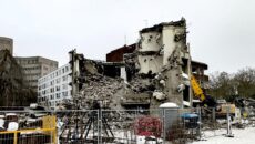 Sinds afgelopen dinsdag wordt het voormalig UWV-pand aan de Van Godewijckstraat flink gesloopt ondanks de bizarre weeromstandigheden van de afgelopen dagen. In de plaats van het voormalige UWV-gebouw komen nieuwe appartementen.